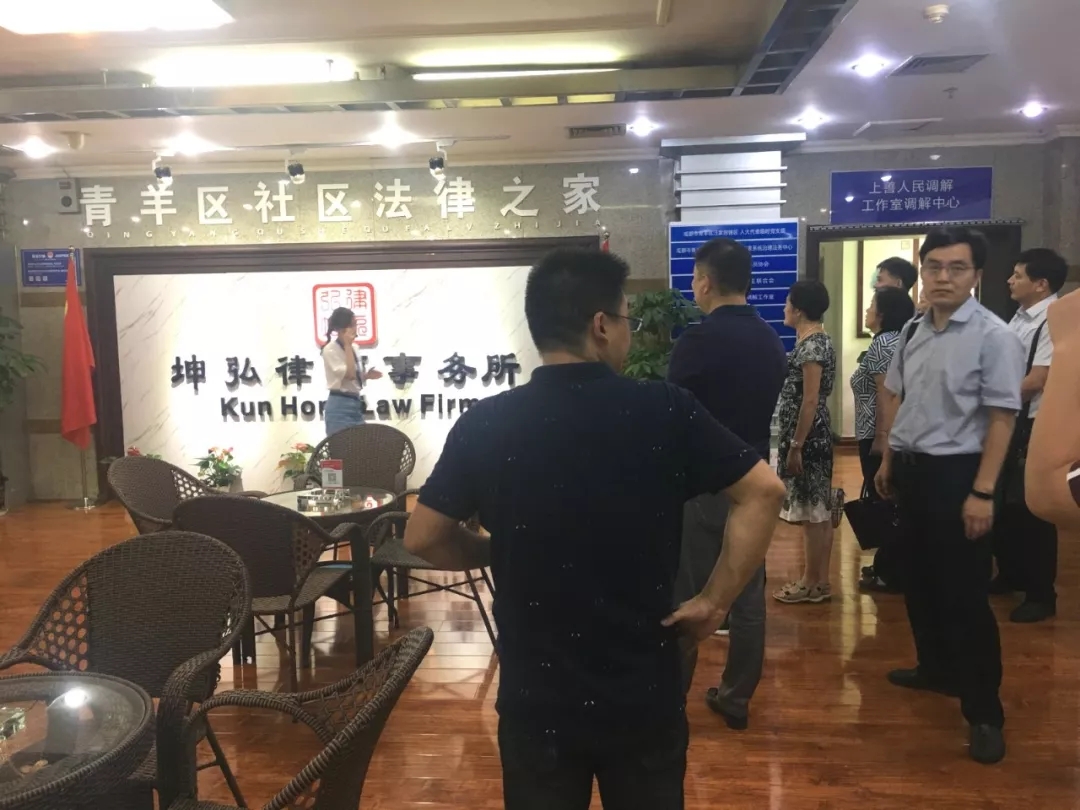 9月4日下午,上海市奉贤区司法局党委副书记黄尧富、党委委员、纪委书记钟凌等一行,在青羊区司法局副局长曹策等领导的陪同下莅临四川坤弘律师事务所及“青羊区社区法律之家"考察调研。