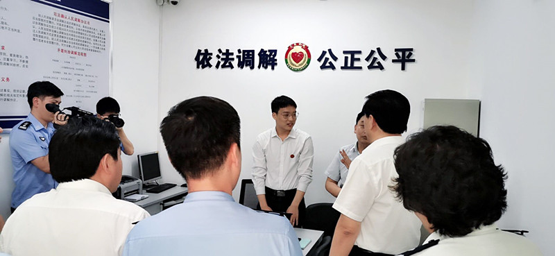 7月10日下午,四川省委常委、政法委书记邓勇一行莅临黄瓦街派出所调研。四川坤弘律师事务所副主任律师雷雨向领导汇报了人民调解室驻所以来律师参与“公调对接”工作所取得的成绩进行了详细介绍。